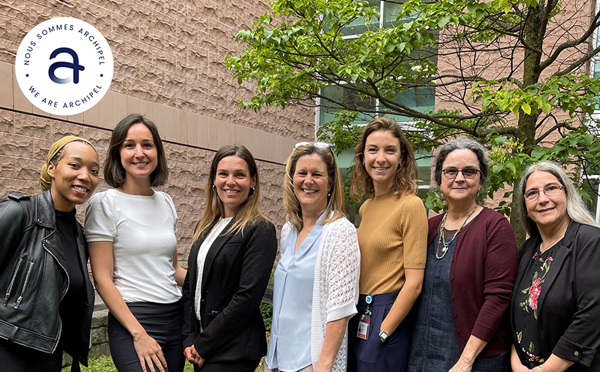L’équipe de la Clinique de mieux-être post-partum Archipel (de gauche à droite) : Sharlene Clarke, Ioana Negru, Natalie Rozon, Dre Nadine Ostiguy, Camille Brunet, Louise Gilbert et Josée Gauthier.